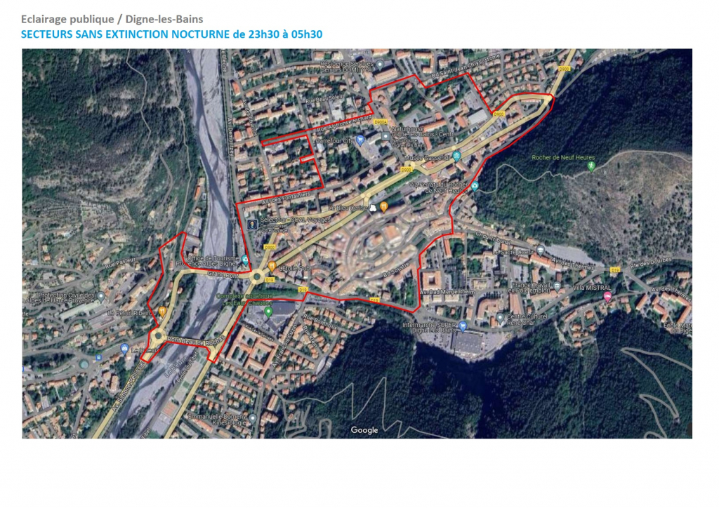 Dès cet été, 75 % des luminaires de la ville seront ainsi éteints de 23h30 à 5h30. L’extinction nocturne concernera l’ensemble du territoire communal à l’exception des secteurs suivants :