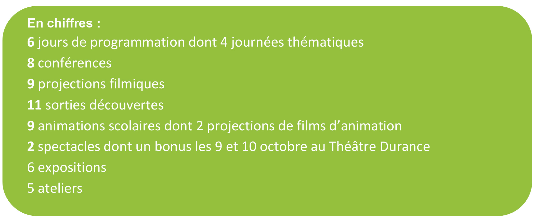 Pendant six jours, une cinquantaine de rendez-vous sont proposés au grand public : conférences, projections, expositions, sorties découverte en nature, spectacles et ateliers participatifs… Autant d’occasions de (re)découvrir la biodiversité exceptionnelle de notre territoire, de mieux comprendre les enjeux liés au climat et d’échanger directement avec des scientifiques, auteurs et réalisateurs de renom.