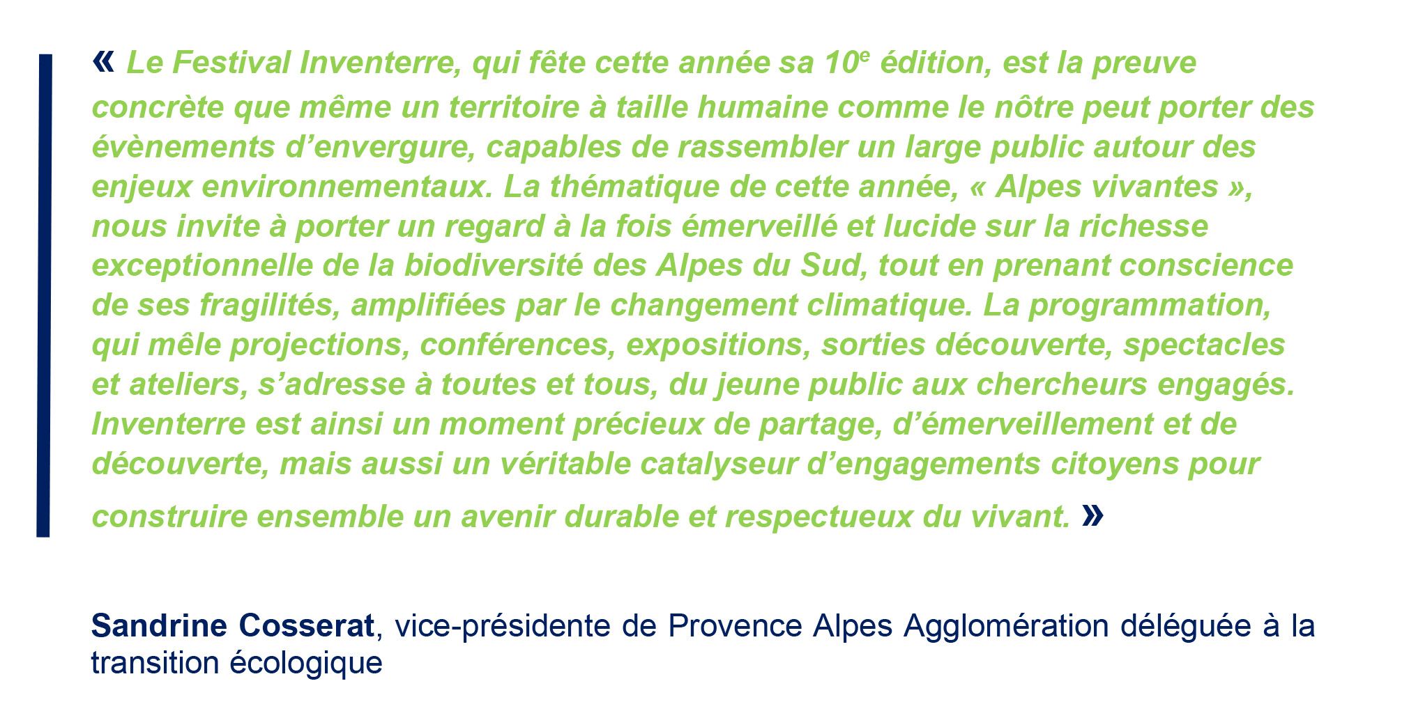 Pour sa 10e édition, le festival de la biodiversité Inventerre met à l’honneur les « Alpes vivantes », une thématique inédite qui célèbre la richesse de la biodiversité alpine tout en alertant sur les menaces croissantes qu’elle subit sous l’effet du réchauffement climatique.