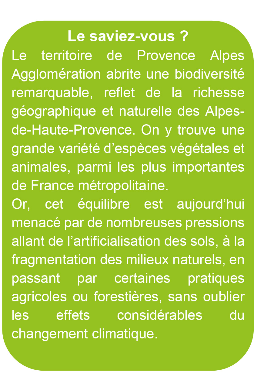Résolument engagée en faveur de la transition écologique, Provence Alpes Agglomération fait de la préservation de la biodiversité un axe majeur de son action.