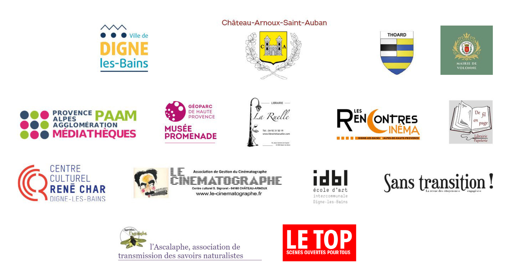Cet évènement est organisé par Provence Alpes Agglomération en partenariat avec les communes de Digne-les-Bains, Château-Arnoux-Saint-Auban, Thoard, Volonne, le Géoparc de Haute-Provence, l’association l’Ascalaphe, le réseau des médiathèques de l’agglomération, Les Rencontres cinématographiques de Digne-les-Bains, le centre culturel René-Char, le Cinématographe, le Top, l’idbl, le magazine Sans Transition et les librairies La Ruelle et De Fil en Page.