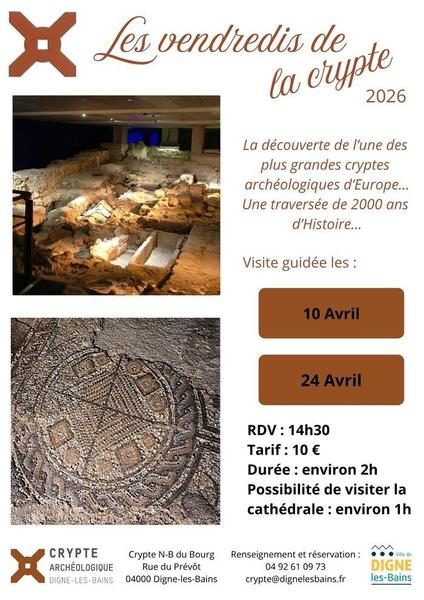 Visite guidée de la Crypte archéologique sur réservation au 04 92 61 09 73 (possibilité de laisser un message) plus visite de la cathédrale Notre-Dame du Bourg.