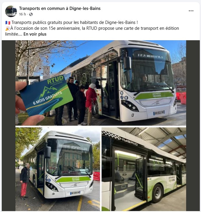 Provence Alpes Agglomération et la Ville de Digne-les-Bains alertent les usagers : une escroquerie circule actuellement sur les réseaux sociaux au sujet d’une prétendue carte de transport gratuite et en édition limitée portant le logo de la RTUD.Ne cliquez pas sur les liens suspects