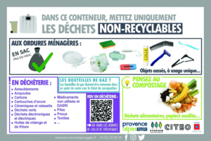 Les habitants sont ainsi tenus de respecter les règles de tri indiquées sur les conteneurs, distinguant les emballages, le papier, le verre et les Ordures Ménagères résiduelles. Consultez les consignes de tri