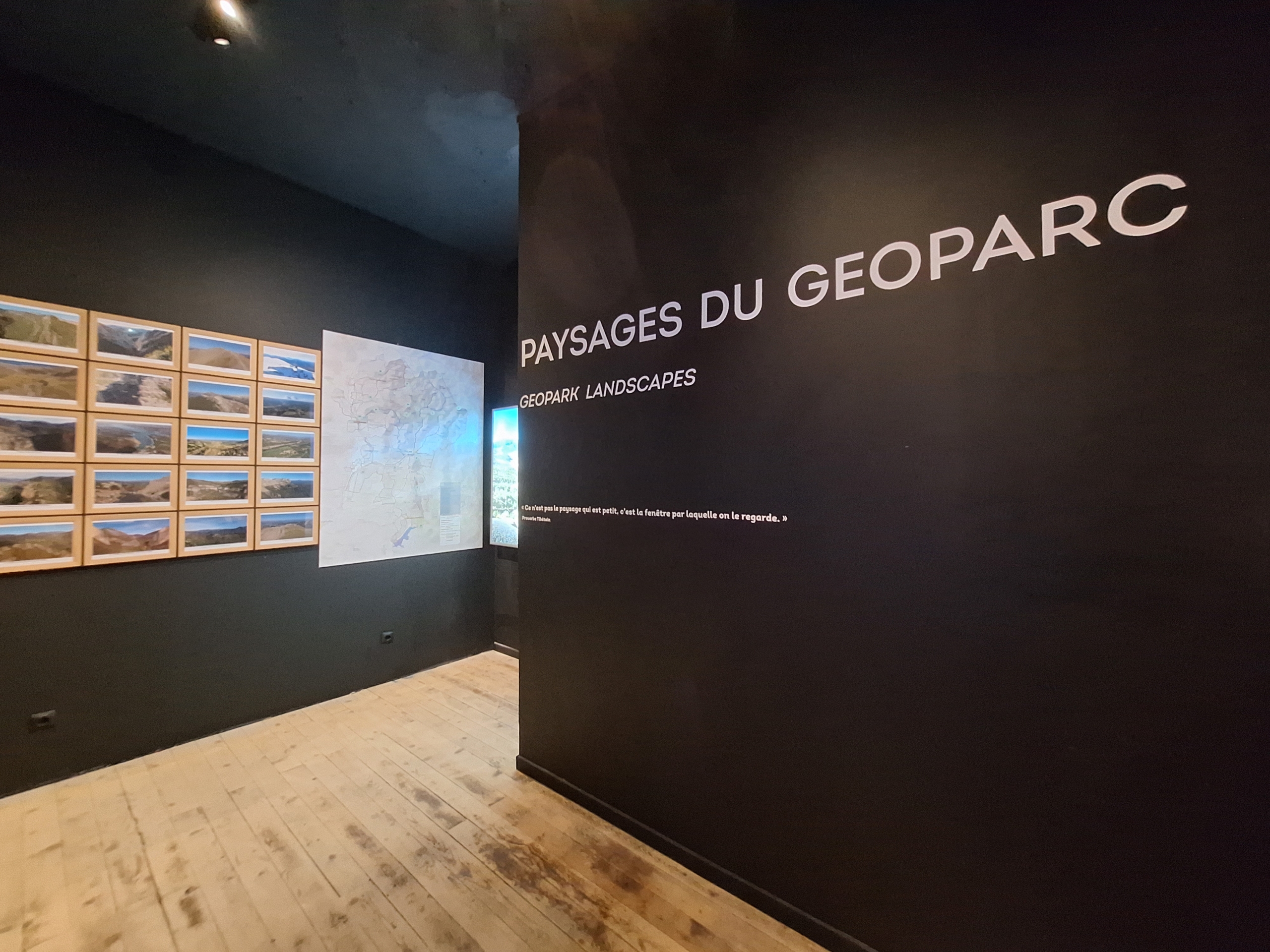 Cette exposition se trouve au deuxième niveau de la Maison des Remparts, dans la salle qui accueillait auparavant l’exposition sur l’imaginaire géologique (ex-salle Autard). Elle propose une immersion dans les paysages emblématiques du Géoparc.