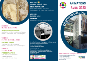 Découvrez le programme culturel de la médiathèque de Digne-les-Bains