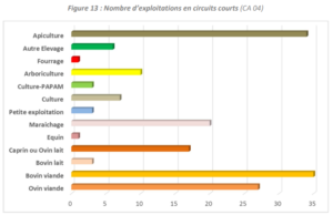 Sur Provence Alpes Agglomération, l’ensemble des exploitations en maraichage, apiculture, autres élevage (volailles, porcs), et caprin-ovin fromagers est orienté vers les circuits courts.