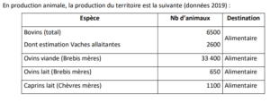 Ainsi, les exploitations en élevage ruminant représentent presque la moitié des exploitations agricoles professionnelles du territoire : 48% des exploitations professionnelles (hors petites exploitations).