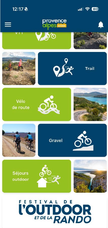 • Application mobile « Provence Alpes Outdoor » téléchargeable gratuitement sur App store et Google Play