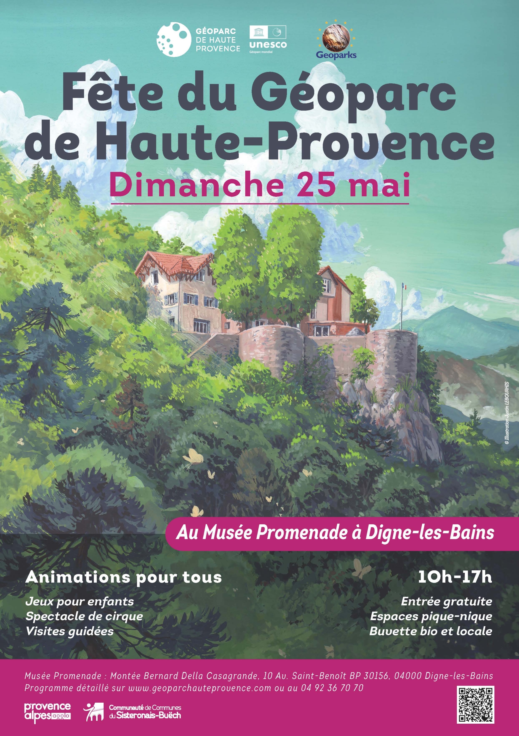 Dimanche 25 mai 2025, le Musée Promenade de Digne-les-Bains organise la Fête du Géoparc de Haute-Provence : un évènement festif, gratuit et ouvert à tous, qui marquera le lancement de la Semaine européenne des Géoparcs. De 10h à 17h, petits et grands sont invités à découvrir la richesse patrimoniale du territoire à travers une programmation variée mêlant ateliers, démonstrations, expositions, visites guidées, jeux et spectacle vivant.