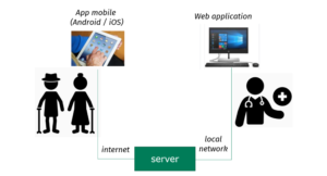 Ainsi, un système logiciel a été conçu pour faciliter la communication et l’interaction entre les personnes fragiles et les différents opérateurs sociaux et sanitaires du territoire, soignants, services sociaux et services de santé. Les personnes fragiles ont à leur disposition une application mobile simple d’utilisation qui leur permet de rester en contact avec le personnel soignant sans avoir à sortir de chez elles. Le médecin dispose quant à lui d’une application web qui lui permet de communiquer avec les personnes fragiles dont il a la charge, et de noter des informations pouvant être partagées, même partiellement, avec d’autres agents de santé et sociaux, impliqués dans la prise en charge de ces personnes. Les données sensibles sont cryptées et locales pour préserver la vie privée des personnes fragiles.