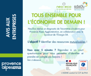 La communauté d’agglomération Provence Alpes Agglomération souhaite s’engager dans une démarche d’économie circulaire à destination des entreprises du territoire. Cette initiative a pour objectif de mettre en réseau les entreprises locales afin de générer des synergies bénéfiques tant sur le plan économique qu’écologique et d’orienter vers des financements pour les faire émerger. Ces synergies peuvent inclure divers flux de ressources: matières premières, eau, énergie, ressources humaines, équipements, locaux, etc.