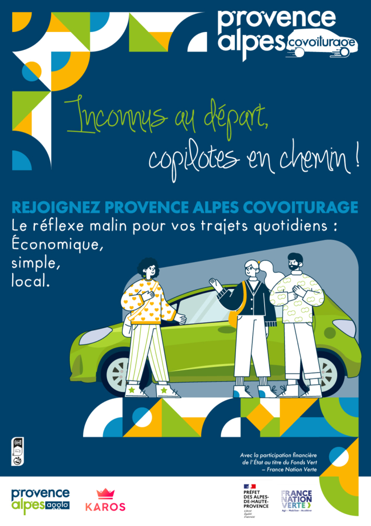 Provence Alpes Agglomération rejoint d’autres collectivités déjà engagées comme Durance-Luberon-Verdon Agglomération, en s’associant à Karos, une application de covoiturage intelligente. Objectif : faciliter vos déplacements quotidiens entre votre domicile et votre lieu de travail.