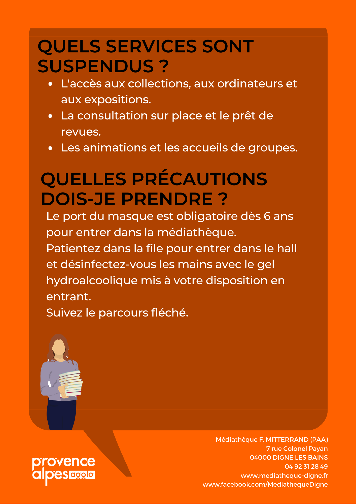 Un protocole sanitaire strict est respecté pour vous permettre de continuer à emprunter vos documents. Le détail dans ce diaporama :