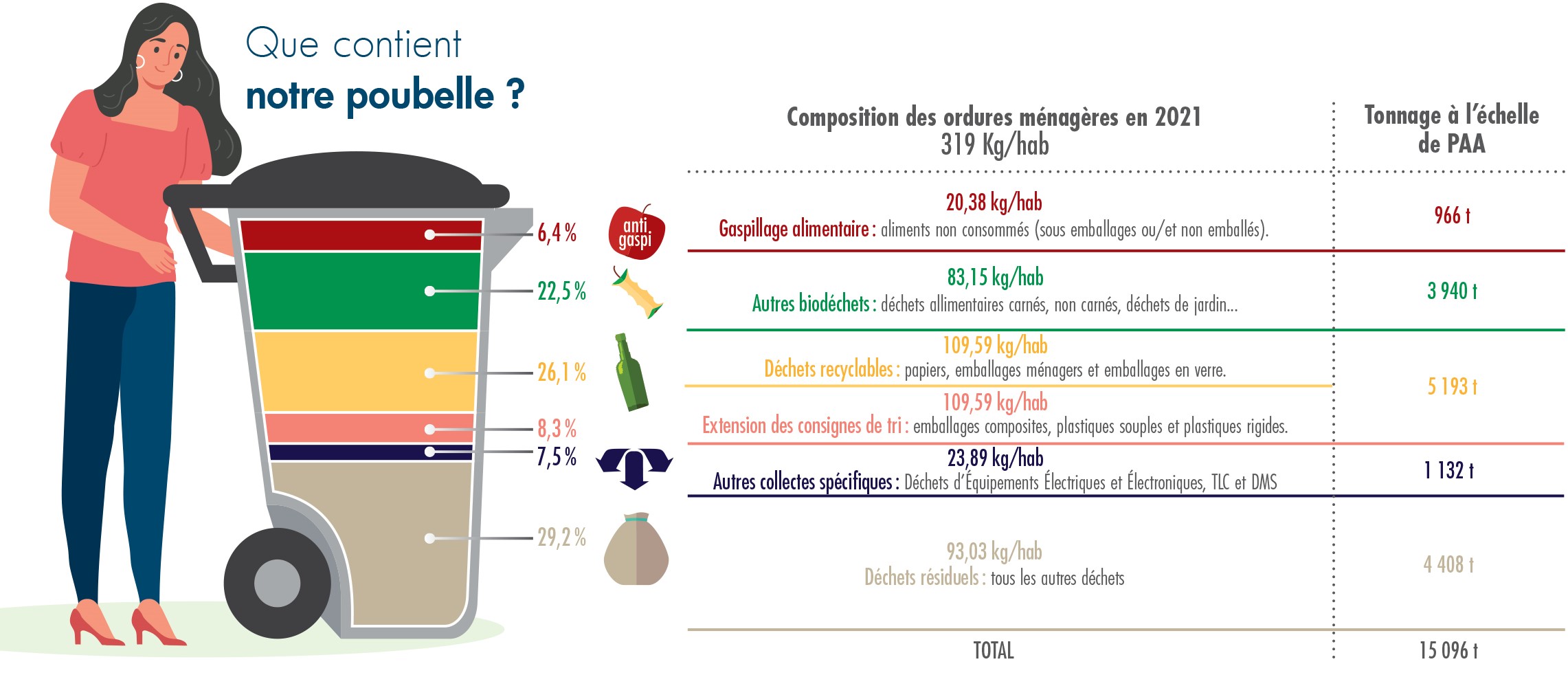 Les habitants de Provence Alpes Agglomération produisent 319 kg de déchets ménagers par an en moyenne, soit 73 kg de plus que la moyenne nationale et 119 kg de plus que la moyenne des collectivités de notre typologie.