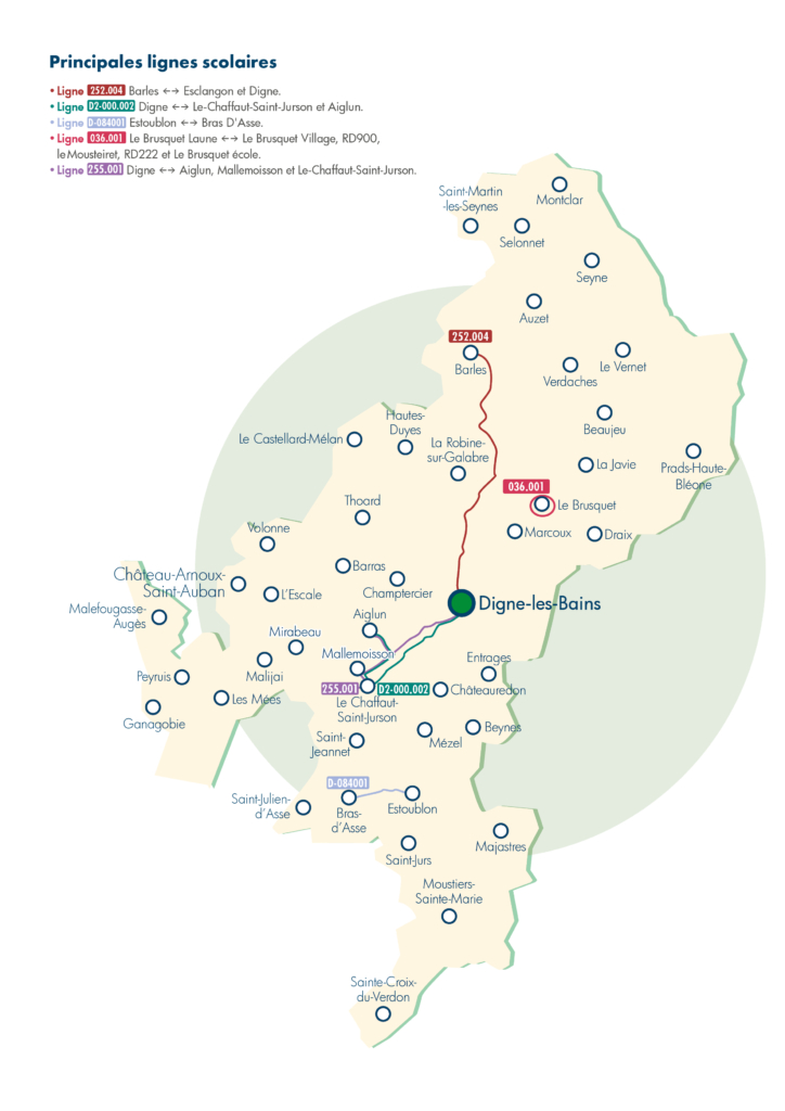 Certaines lignes de transports scolaires sont gérées par le Site Bléone-Durance ou la Région.