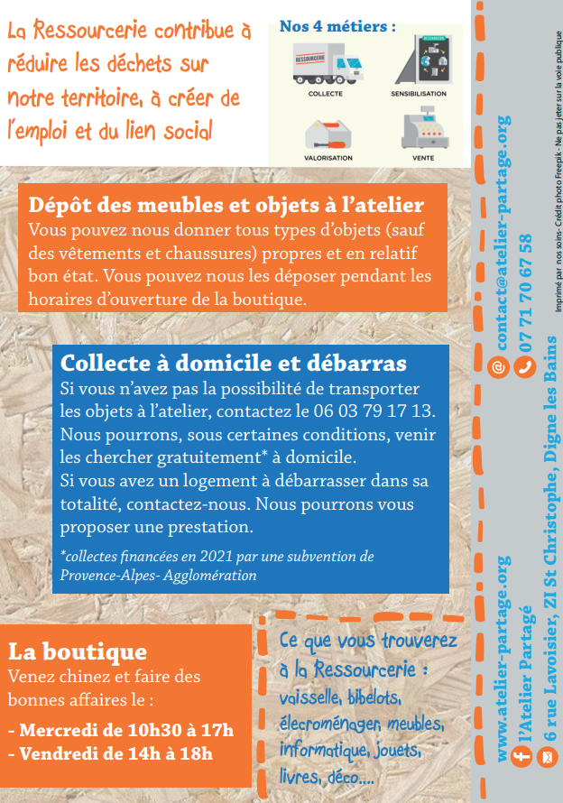 Pour les professionnels, un collectif de ressourceries des Alpes de Haute Provence et des Hautes-Alpes vous propose une solution de récupération :