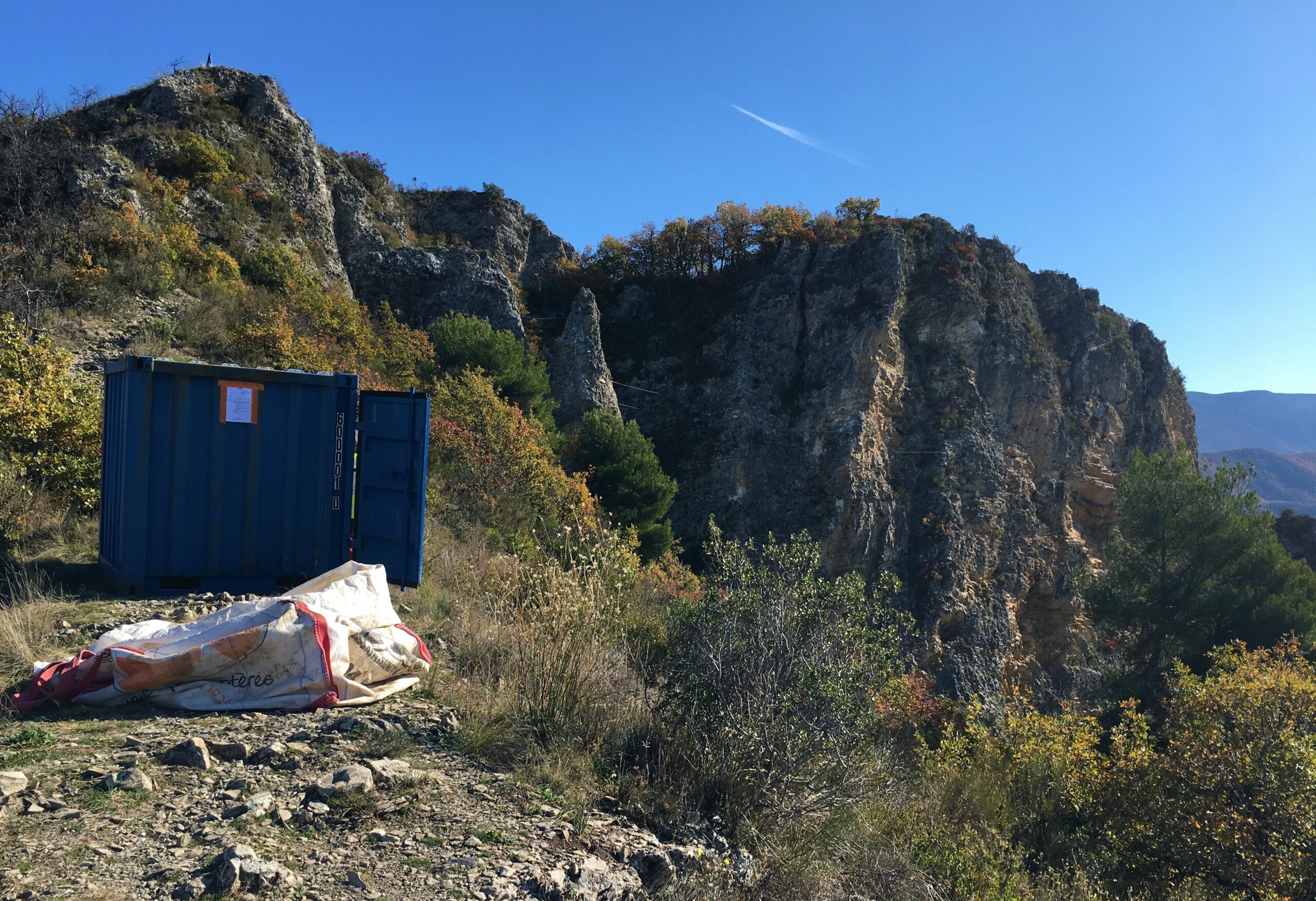 Au programme : héliportage des matériaux et des conteneurs / début effectif des travaux d’aménagement de la #viaferrata par les techniciens d’YDEMS
