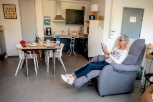 À partir du mois de septembre, des visites de cet appartement témoin sont proposées gratuitement au public. Canne et verre connectés, fauteuil releveur, lit médicalisé, salle de bain aménagée pour éviter les chutes, robot de téléprésence, cuisine ergonomique entièrement adaptée comprenant des meubles escamotables et un plan de travail à hauteur variable… Ces visites sont une opportunité de découvrir et de tester un panel d’équipements conçus pour faciliter la vie quotidienne des personnes en perte d’autonomie.